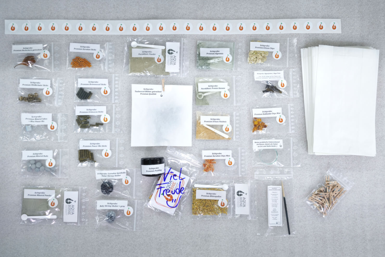 Dieser Kalender für Weihnachten bzw. die Zeit davor, ist sozusagen ein Aqua Birne XL Probenset, mit vielen Artikeln aus unserem breiten Sortiment an Futter / Deko / Mineralien etc.