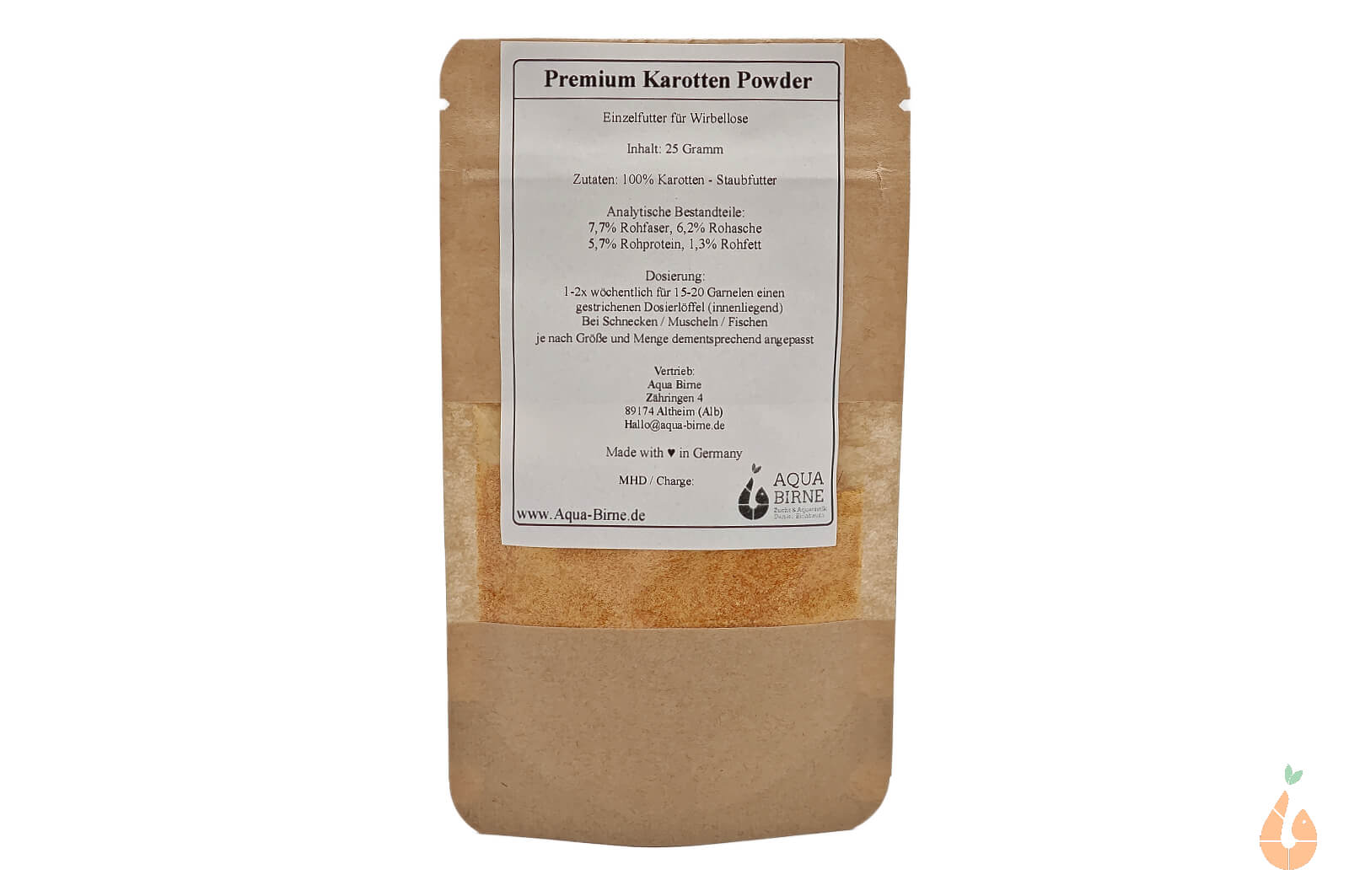 Aqua Birne - Premium Karotten Powder | Einzelfutter / Staubfutter für Wirbellose