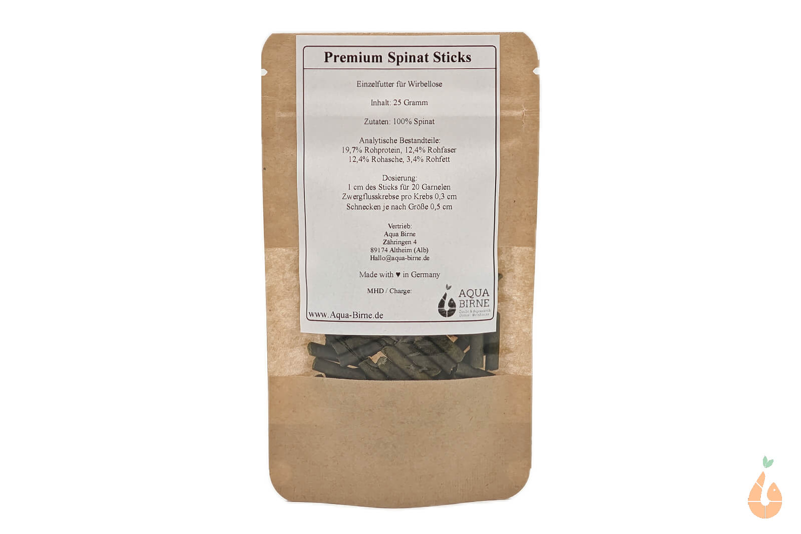 Aqua Birne - Premium Spinat Sticks / Pellets | Einzelfutter für Wirbellose