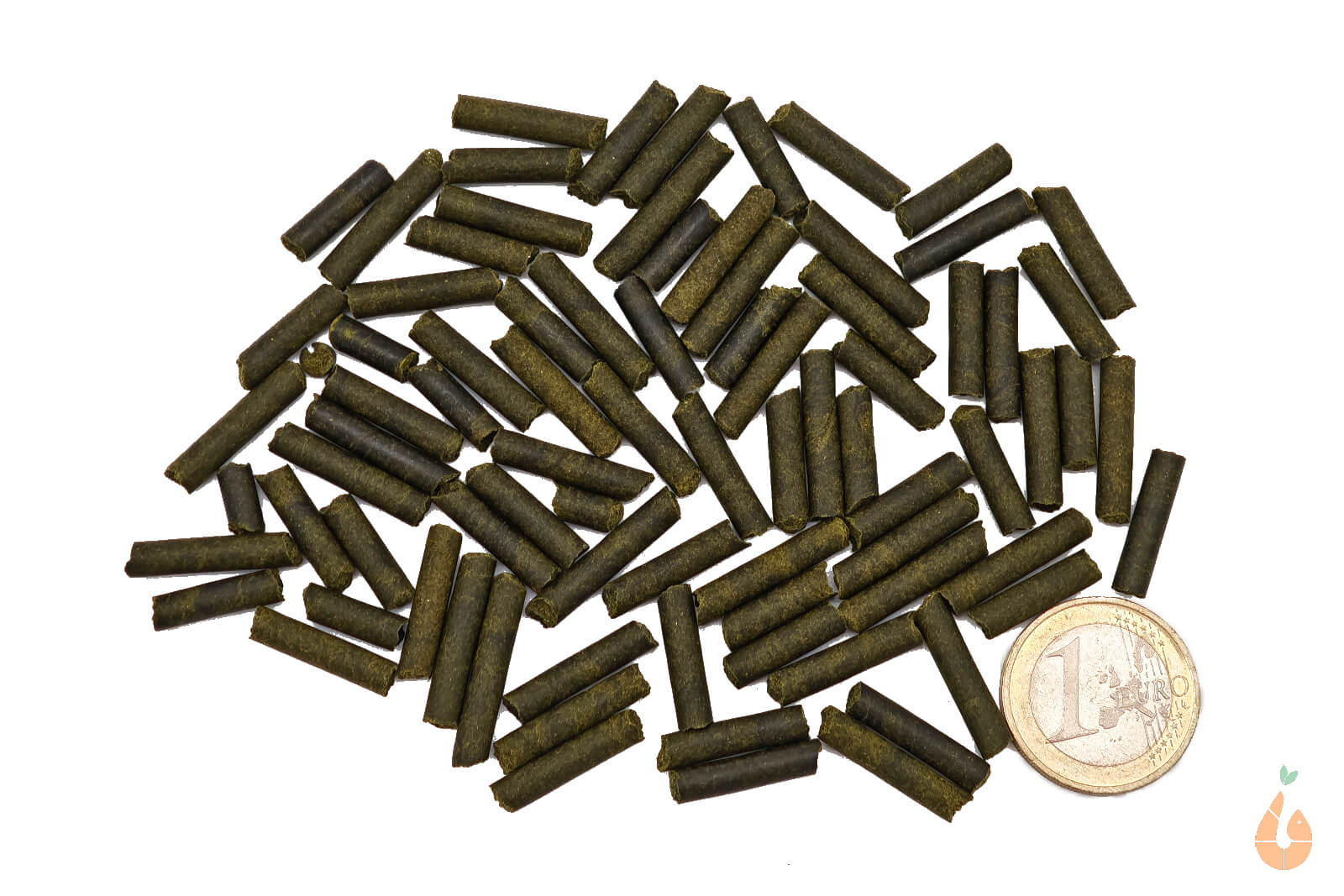 Mengenbeispiel: Die Menge auf dem Artikelbild mit der Euromünze als Größenvergleich beträgt 25 Gramm.