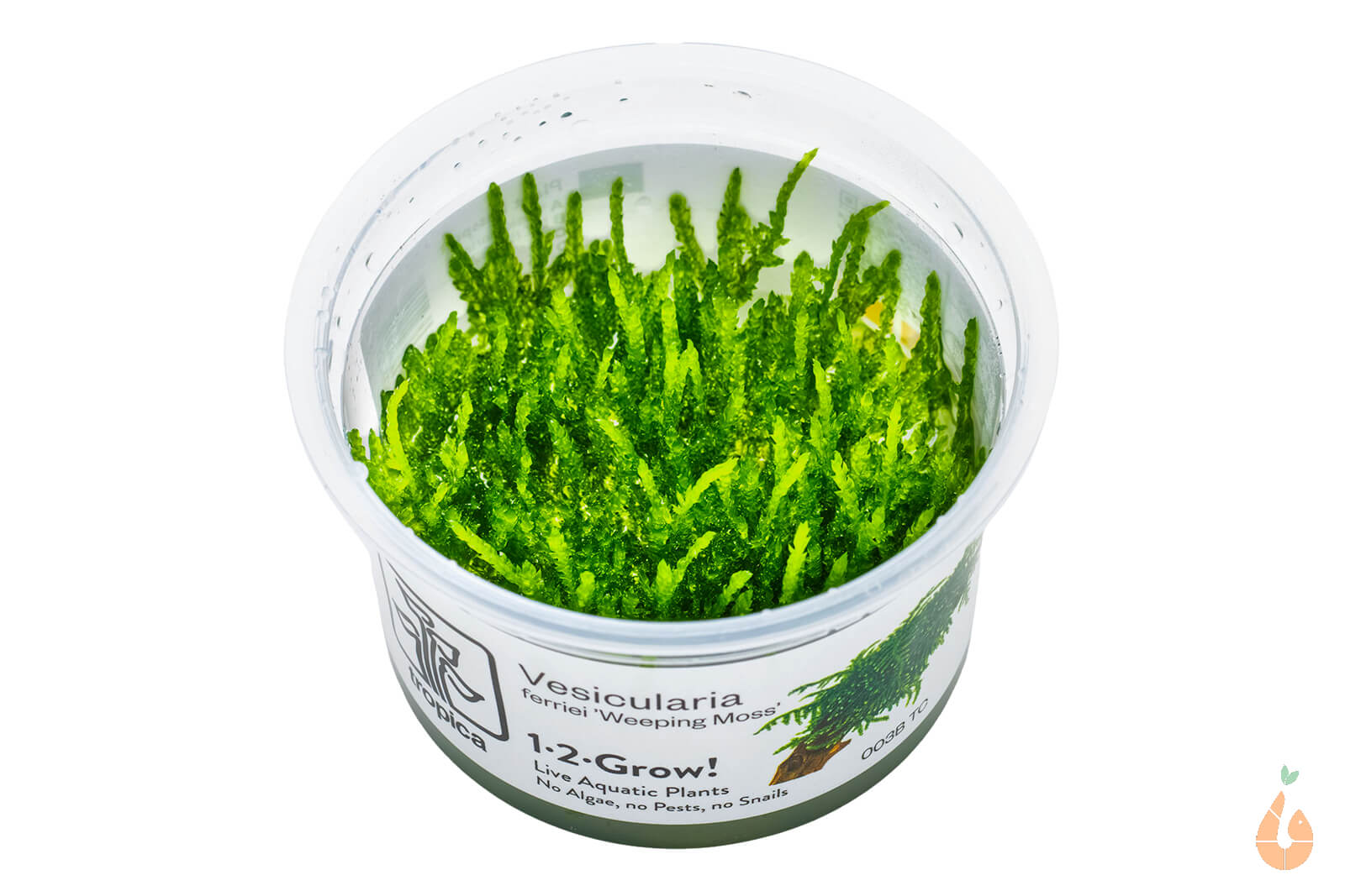 Das Trauerweidenmoos "Vesicularia ferriei", auch bekannt als Weeping Moos, stammt ursprünglich aus Südostasien. Charakteristisch sind die leicht herabhängenden Triebe, die im Aquarium an eine kleine Trauerweide erinnern und einen natürlichen, fließenden Eindruck erzeugen. Aufgebunden / aufgeklebt auf Wurzeln, Äste oder Steine bildet es wunderschöne Hängeeffekte und ist ein echter Blickfang in jedem Garnelenaquarium / Garnelenbecken oder Aquascape / Aquascaping Aquarium.